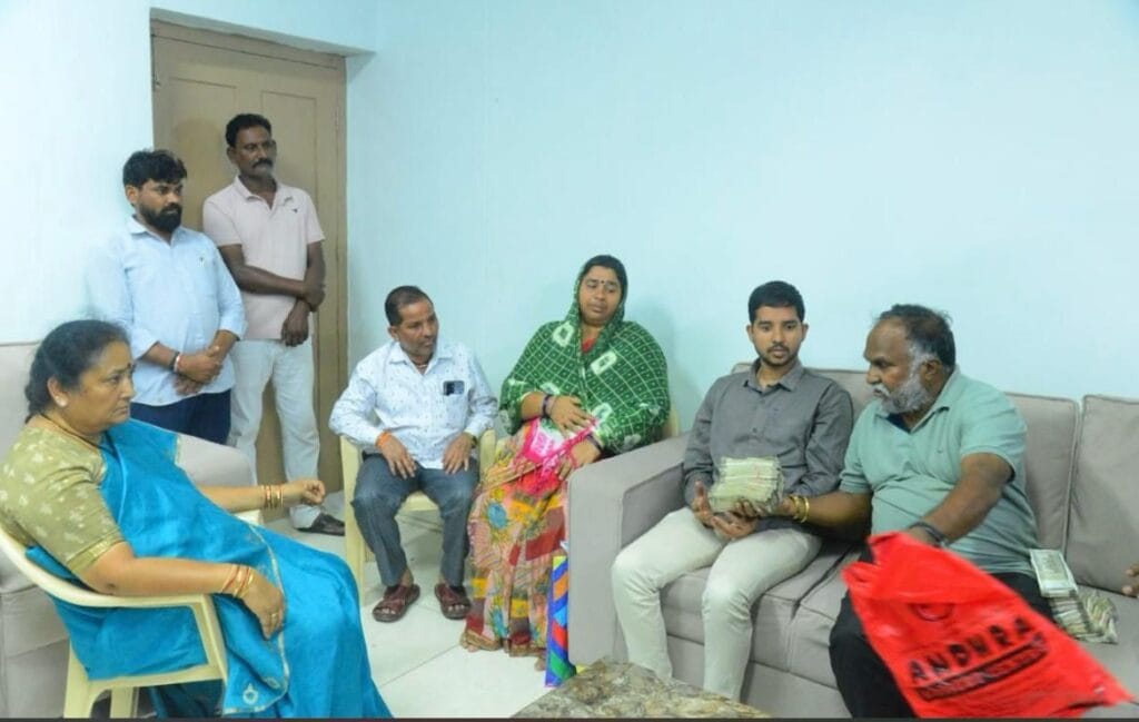 కంటి చూపు కోల్పోయిన విద్యార్థికి తిరిగి చూపు వచ్చేందుకు చికిత్స కోసం టీపీసీసీ వర్కింగ్ ప్రెసిడెంట్ తూర్పు నిర్మల జగ్గారెడ్డి దంపతులు రూ 10లక్షలు రూపాయల ఆర్థిక సహాయం అందజేశారు. సంజారెడ్డి జిల్లా కంది మండలానికి చెందిన సంపురన్ నాయక్ రోడ్డు ప్రమాదంలో కంటి చూపు కోల్పోగా చికిత్స నిమిత్తం పది లక్షల రూపాయలు నాయక్ కు అందజేశారు. చికిత్స విజయవంతంగా పూర్తయి కంటి చూపు రావాలని ఆకాంక్షించారు.