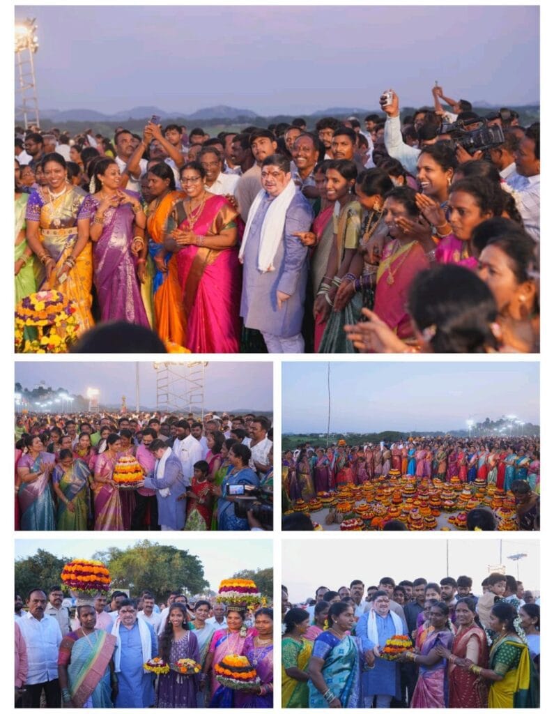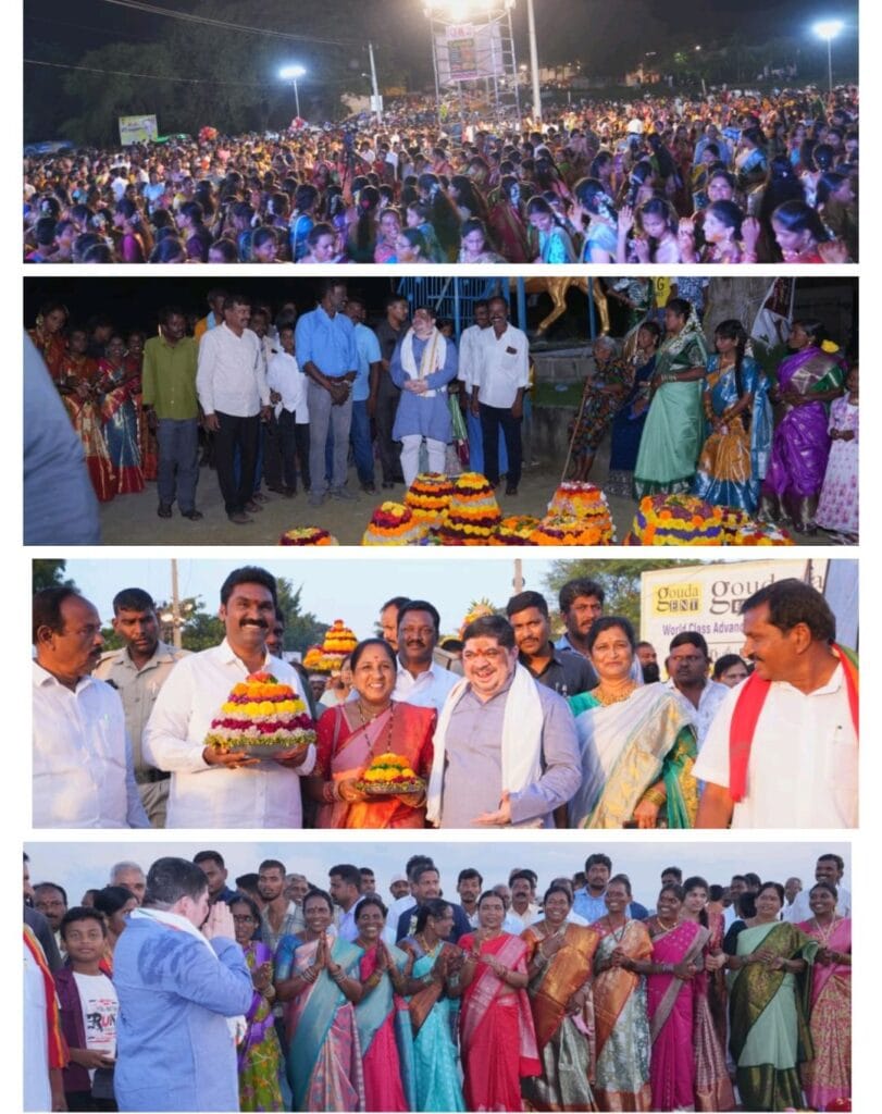 సద్దుల బతుకమ్మ పండుగ సందర్భంగా హుస్నాబాద్ రేణుక ఎల్లమ్మ చెరువు వద్ద ఘనంగా నిర్వహించిన బతుకమ్మ వేడుకల్లో రాష్ట్ర మంత్రి పొన్నం ప్రభాకర్ పాల్గొన్నారు. పండుగ సందర్బంగా మహిళలు పూలతో బతుకమ్మను అలంకరించి పాటలు పాడుతూ ఆనందంగా ఆడారు. వారితో కలసి మంత్రి పొన్నం ప్రభాకర్ ఆత్మీయంగా పలకరిస్తూ పండుగ శుభాకాంక్షలు తెలిపారు. తెలంగాణ సాంప్రదాయాల ప్రకారం బతుకమ్మ పండుగ అందరికీ చల్లదనాన్ని పంచుతుందని, ఈ ఏడాది మంచి వర్షాలు కురవడంతో పంటలు బాగుండి ప్రజలు సుఖసంతోషాలతో ఉండాలని అమ్మవారిని ప్రార్థిస్తున్నానని అన్నారు. అంతేకాక దసరా పండుగ సందర్భంగా సాయంత్రం రాంలీలా కార్యక్రమం కూడా నిర్వహించనున్నట్లు తెలిపారు. వచ్చే ఏడాదికి ఎల్లమ్మ చెరువు మరింత అందంగా సుందరీకరించేందుకు పనులు జరుగుతున్నాయని, ప్రజల సౌకర్యార్థం అన్ని ఏర్పాట్లు చేయనున్నట్లు వెల్లడించారు. వేడుకల సందర్భంగా మంత్రి చెరువు వద్ద ఏర్పాట్లను పరిశీలించారు. చెరువు అలుగు పోసే పరిస్థితులను దృష్టిలో పెట్టుకుని బారికేడ్లు ఏర్పాటు చేసినట్లు, మున్సిపల్ సిబ్బంది నిరంతరం పర్యవేక్షణ కొనసాగిస్తున్నారని పేర్కొన్నారు. స్థానిక నేతలు, అధికారులు చెరువులో స్పీడ్ బోట్‌లో ప్రయాణం చేస్తూ ఏర్పాట్లను సమీక్షించారు.