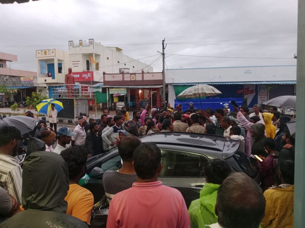 బుధవారం నంగునూరు లోని ఆగ్రోస్ కేంద్రానికి 554 యూరియా బస్తాలు మాత్రమే వచ్చాయి. క్యూ లైన్లో రైతులు ఎక్కువ మంది ఉండడం, వర్షం కురుస్తుండడంతో రైతులకు టోకెన్లను వ్యవసాయ అధికారులతో పాటు, నంగునూరు ప్రాథమిక వ్యవసాయ సహకార పరపతి సంఘం అధికారులు అందించారు. ఈ క్రమంలో వచ్చిన బస్తాల కంటే ఎక్కువ టోకెన్లు అందించారు. దీనికి తోడు ఆగ్రోస్ కేంద్రంలో బస్తాలను ఇచ్చేందుకు అవసరమైన ఓటీపీ కోసం రైతుల వద్ద ముందుగానే ఆధార్ కార్డులు తీసుకున్నారు. ఈ క్రమంలో రాసిన టోకెన్ల కంటే ఎక్కువ ఆధార్ కార్డులు తీసుకున్నారు. దీంతో అందరికీ బస్తాలు అందలేదు. ఆగ్రహించిన రైతులు మండల వ్యవసాయ అధికారి బి.గీతను అడ్డుకున్నారు. కదలకుండా కారు చుట్టుముట్టారు. తమకు యూరియా బస్తాలు ఇచ్చే వరకు కదలనిచ్చేది లేదంటూ అడ్డుకున్నారు. సుమారు రెండు గంటల పాటు కదలనివ్వలేదు. విషయం తెలుసుకున్న రాజగోపాలపేట ఎస్సై వివేక్ ఆధ్వర్యంలో పోలీసులు నంగునూరుకు చేరుకుని రైతులకు నచ్చజెప్పి పంపించారు.