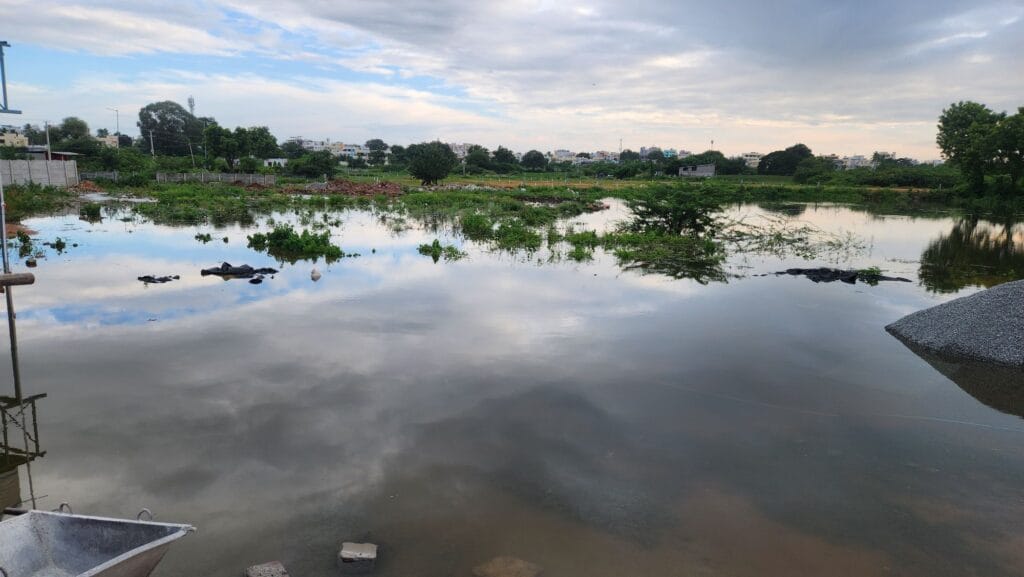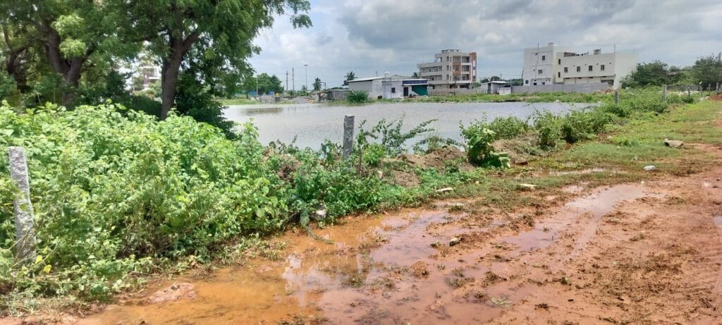సిద్దిపేట జిల్లా సిద్ధిపేట పట్టణం.. శ్రీ రేణుక ఎల్లమ్మ దేవాలయం.. బోగేశ్వర ఆలయం.. సమీపంలో పంట పొలాలను చదును చేసి.. ఎర్ర చెరువు మత్తడి కాలువను పూడ్చి కోందరు రియాల్టర్లు రాజకీయ నేతల అండదండలతో భారీ ఎత్తున వెంచర్ చేశారు. అయితే వెంచర్ నిర్మణాం లో ఎర్రచెరువు మత్తడి నాలాలు కనుమరుగు చేసేశారు. గతంలో ఇదే కాలువ వెంట ఉన్న కుంటను స్థానికంగ ఉన్న ఒక రాజకీయ నాయకుడు మట్టితో కూడ్పి వెంచర్ నిర్మణాం చేశాడు.. ప్రస్తుతం ఈ కాలువ ద్వారా ఎర్రచెరువు మత్తడి దూకినప్పుడు ఈ కాలువ ద్వారా చింతల చెరువుకు నీరు చేరుతుంది. ఈ అక్రమ వెంచర్ల నిర్మాణంతో కాలువ అస్తవ్యస్తం అయ్యింది. ఫలితంగా వరద నీరు మొత్తం నిలిచిపోయి.. ప్రజలకు ఇబ్బందిగా మారింది..